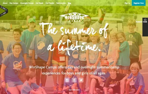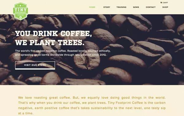 通过色彩对比可以提高整个首屏的趣味性。以上的两个案例中,一个降低了背景图的色彩对比度,令文字更加突出,而另一个则让这种对比出现在文字内。两种方法同样有效。